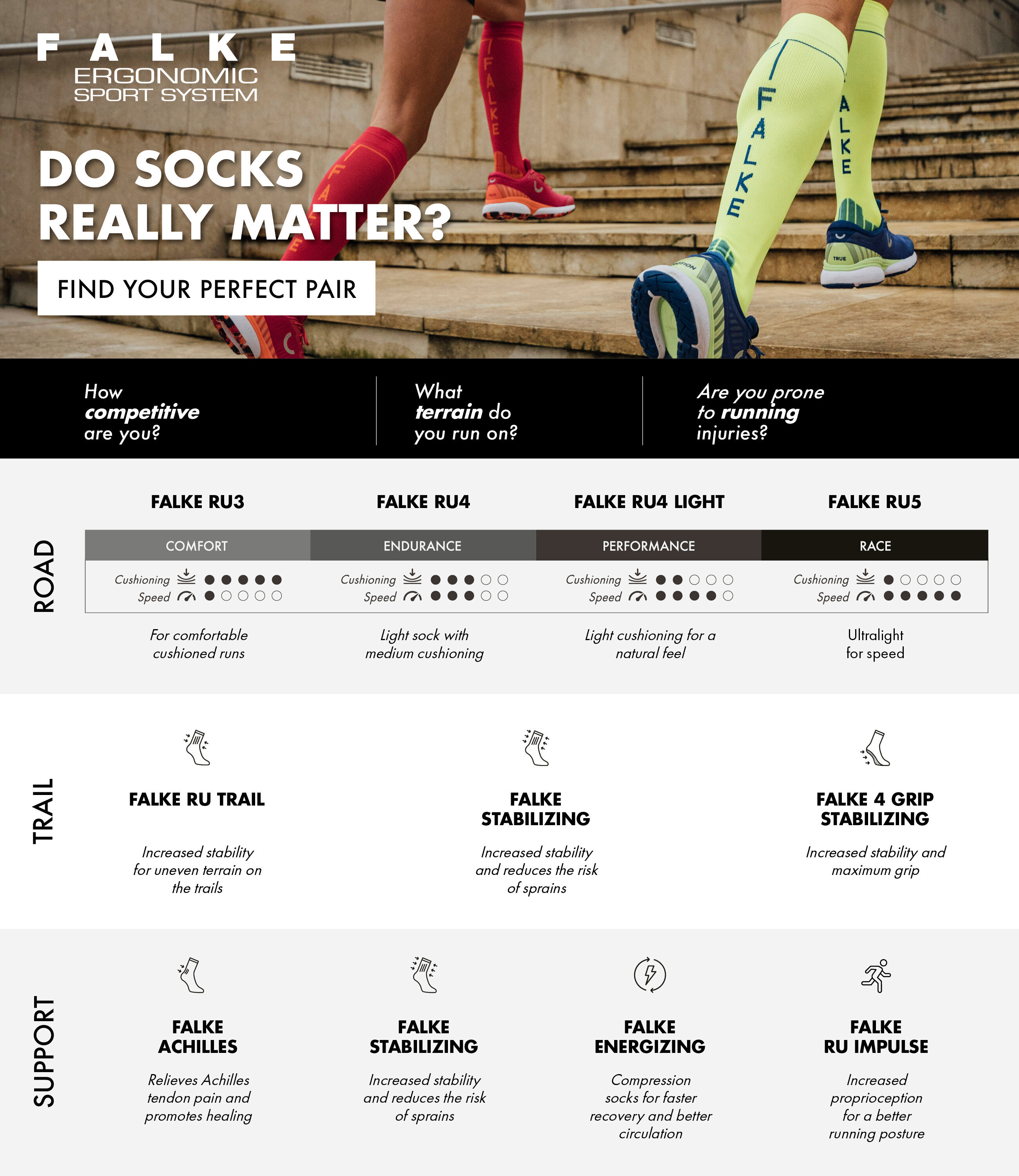- Die Allrounder-Running-Socke mit mittelstarker Polsterung für ausgewogenen Schutz und direkter Kraftübertragung