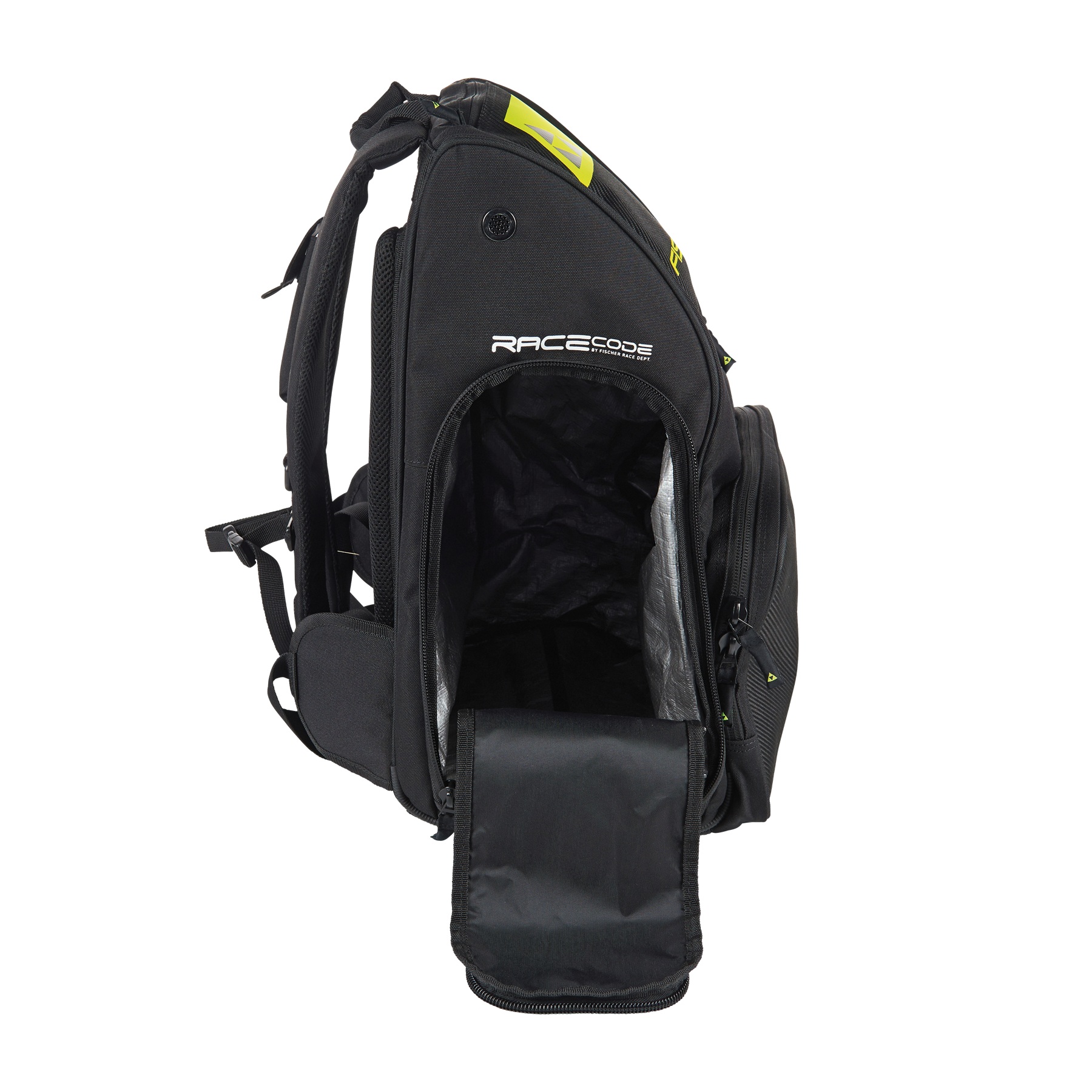 Handschuhe, Mütze und Brille finden im separaten Frontfach Platz und eine Trinkflaschenhalterung ermöglicht den schnellen Zugriff auf Getränke.