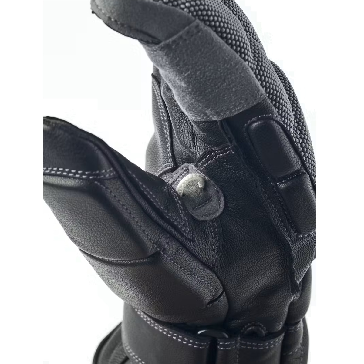 Der GSL Race Comp ist aus dem robusten Ziegenleder von Hestra gefertigt und an Fingern und Knöcheln mit zusätzlichen Verstärkungen aus synthetischem Wildleder und keramischem Material versehen.