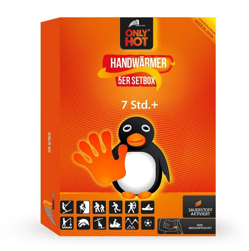 Kalte Hände sind bei sportlichen und freizeitlichen Aktivitäten ein unangenehmes und lästiges Übel, vor allem in den kalten Monaten des Jahres. Eine Vielzahl der Menschen greift auf Handschuhe zurück, doch auch die halten die Kälte nicht immer vollständig auf. Die ONLY HOT Handwärmer schaffen dort Abhilfe und sorgen für lauschig warme Hände. Durch ihre handliche Form können Sie die Wärmer in Ihren Handschuhen oder Jackentaschen verstauen und so für mindestens 7 Stunden die behagliche Wärme an den Händen spüren. So erwärmen die ONLY HOT Handwärmer jedem den Tag, der seinen Lieblingssport, seine Freizeit oder auch seine Arbeitszeit draußen im Freien verbringt.